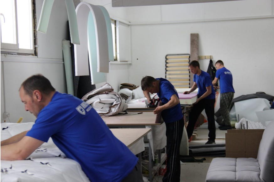 В производстве применяются собственные линейки тканей с высокими эксплуатационными характеристиками. Красивый, приятный на ощупь, износостойкий текстиль любых оттенков используется для обивки мягкой мебели.